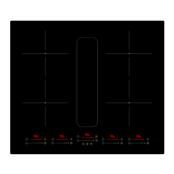 The Montpellier MDAVIN60DF combines high-performance induction cooking with a centrally integrated extractor, all within a streamlined 60cm design. Its four cooking zones, responsive touch slider controls, and sleek black glass finish offer both function and modern flair.