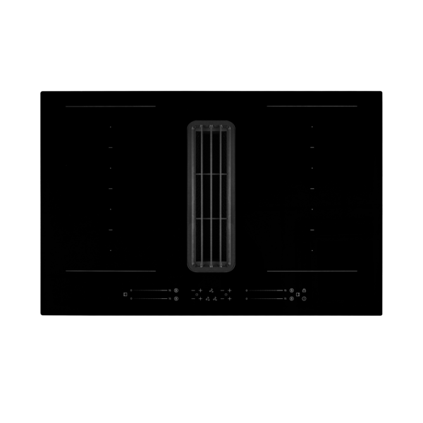This model features a centrally located downdraft extractor, drawing cooking vapours and odours directly from the pan area. The integrated extraction unit keeps air fresh without the need for a separate hood—perfect for open-plan living or island kitchens.